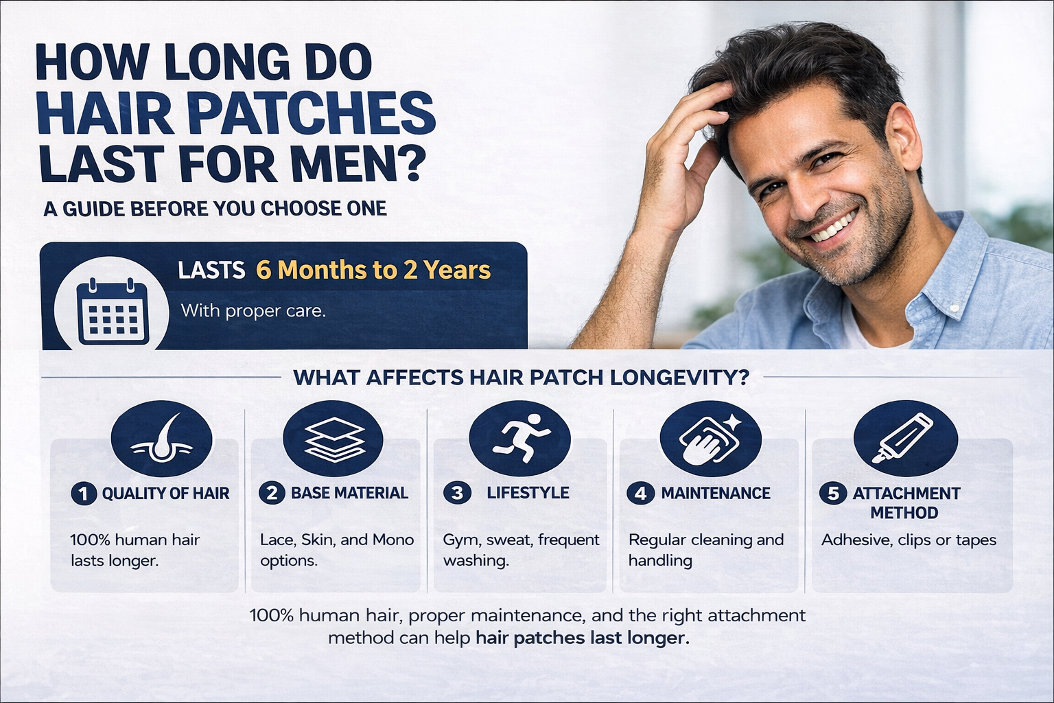 Hair patches for men can last months or even years, depending on how they are chosen and maintained.